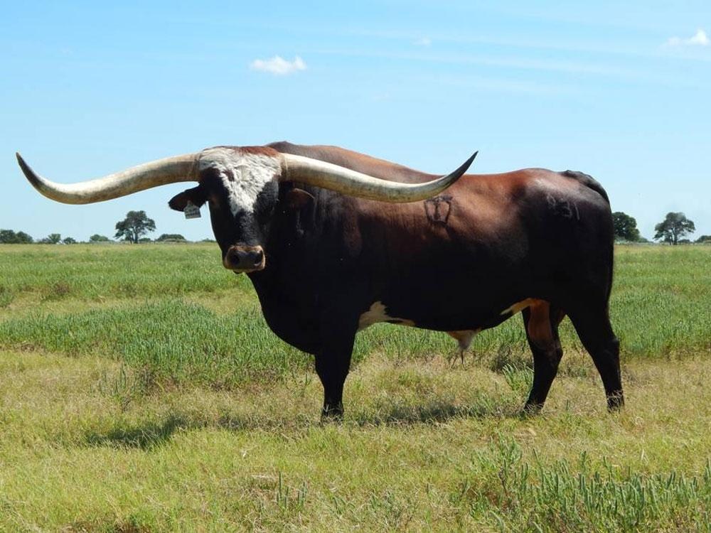 This magnificent double bred Hunt’s Command Respect bull boasts 85” TTT, 107” Total Horn with 17 ½” bases. Commando just turned 15 years old and has given us beautiful calves out of several different female bloodlines. He is the Grand Sire of HR Rosetta that recently sold at public auction for a record breaking $700,000. His pedigree goes back to all seven families.